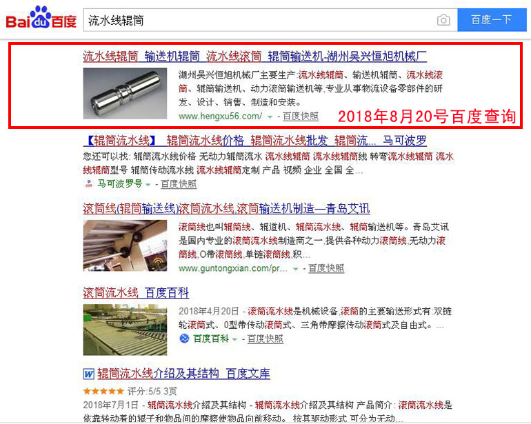 流水線滾筒 百度(PC)自然排名第1名,360搜索、搜狗、手機(jī)搜索等均也有比較好的排名...