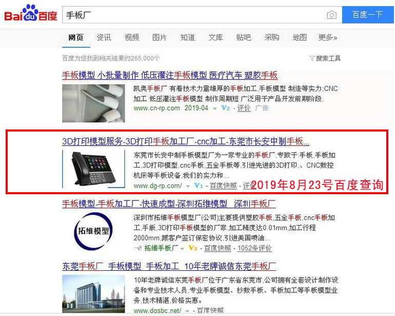 手板加工 : 2019-02-28上線    2019-03-05百度第20(原為第5頁(yè) 第7位)     2019-03-13百度第10名    2019-03-19百度第3名    2019-03-25百度第1名